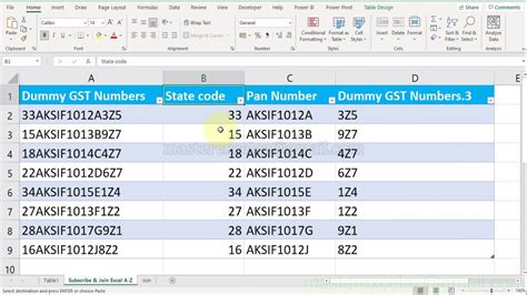 gst number to pan number excel formula