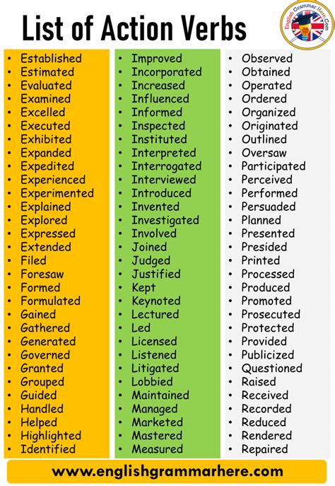 list all action verbs