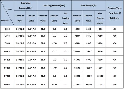 pressure relief valve specifications
